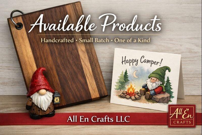 All En Crafts LLC, formed in 2024 by James and Lexie Allen, is a multifaceted creative company built around craftsmanship, storytelling, and a genuine love for making things that matter. As a Better Business Bureau Accredited Business, we take pride in offering products that are thoughtfully created, purposefully designed, and rooted in authenticity. Under the All En Crafts LLC umbrella, our three distinct brands—All*En Crafts™, Rock & Gnome™ Greetings, and The Sawdust Sage™—work together to bring quality, creativity, and heart to every piece we produce.