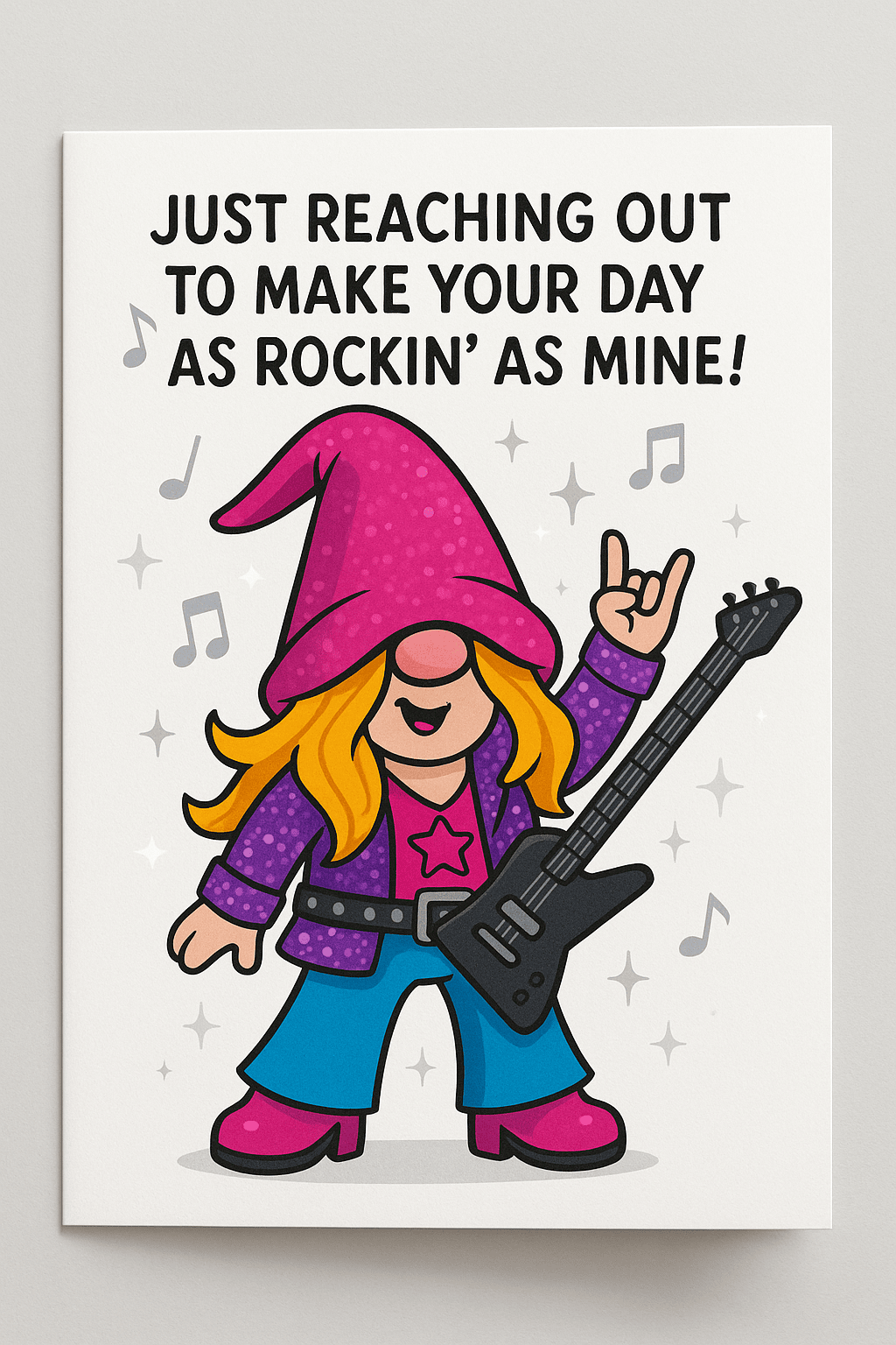 Rock & Gnome Greetings creates illustrated greeting cards for people who appreciate humor, heart, and a little edge. Each design blends hand-drawn artwork with clever style and playful attitude—then you design your message, making every card as personal as the moment it marks.