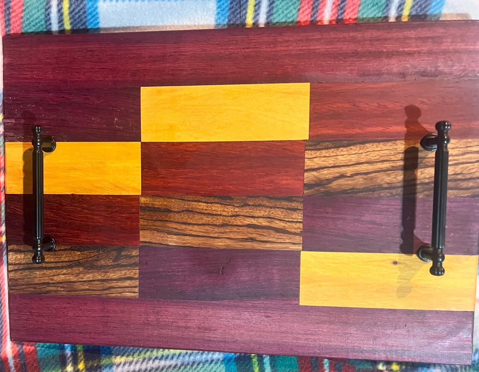 We'd love to add some color to your kitchen. This image is of one of the colorful serving trays we've crafted.